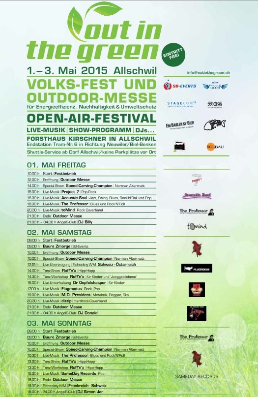 Offizielles Programm Out in the Green Allschwil 2015